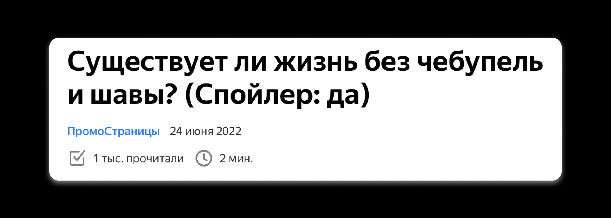 Дисклеймер: почти все статьи, которые мы пишем в ПромоСтраницы, под NDA. Поэтому мы не можем делиться примерами и указывать, что эти заголовки и статьи написали именно мы. В этой статье мы просто подобрали примеры, которые соответствуют приемам.