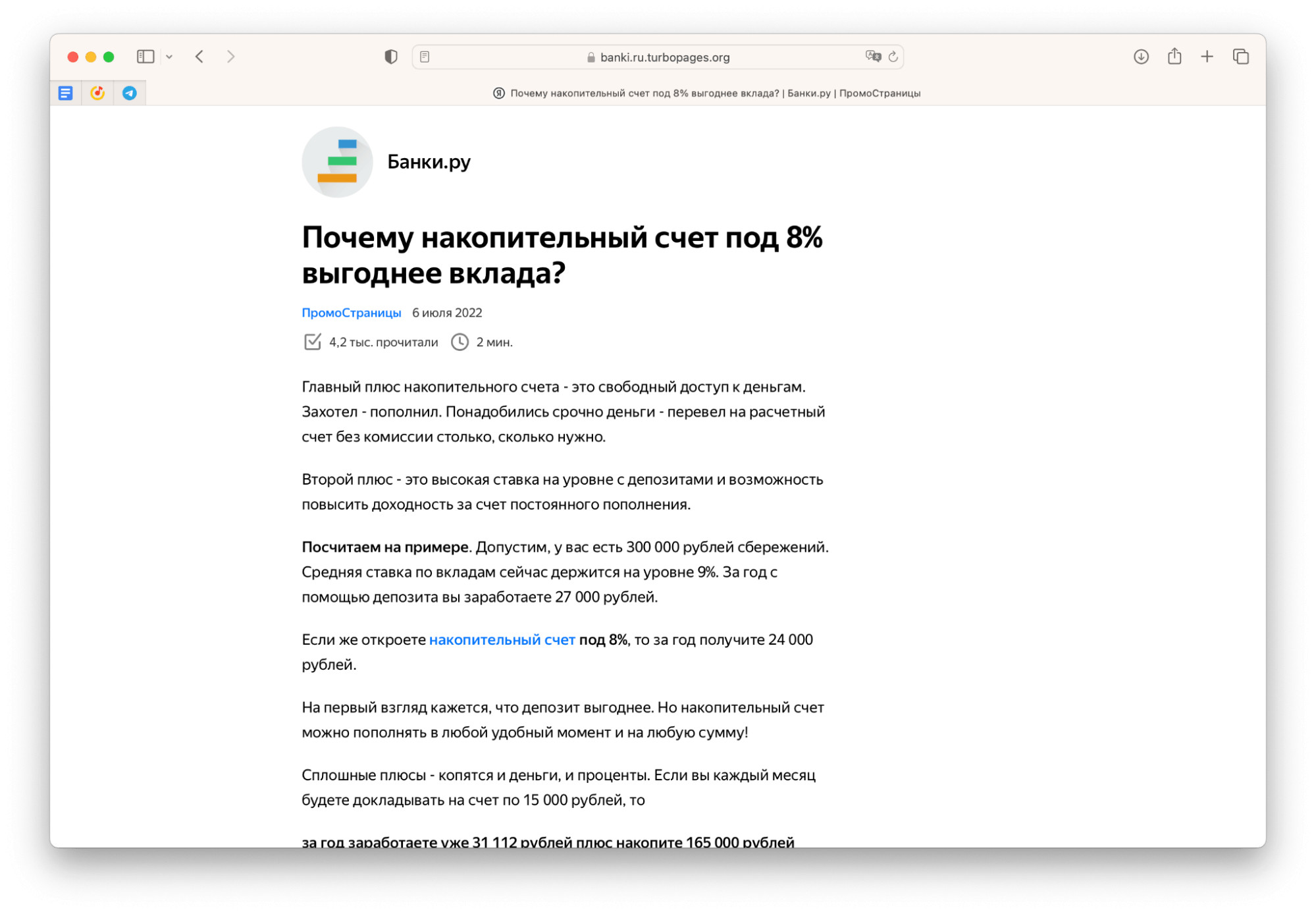 Заголовок может быть рекламным. Для запуска кампании в ПромоСтраницах мы пишем 3-5 разных статей, чтобы проверить, как работают разные заходы. И практически всегда один из заходов — это прямо в заголовке обозначить, что писать будем про такой-то продукт. Например, «Сколько денег вы сможете сэкономить и заработать, если заведёте дебетовую карту от Альфа-Банка»
