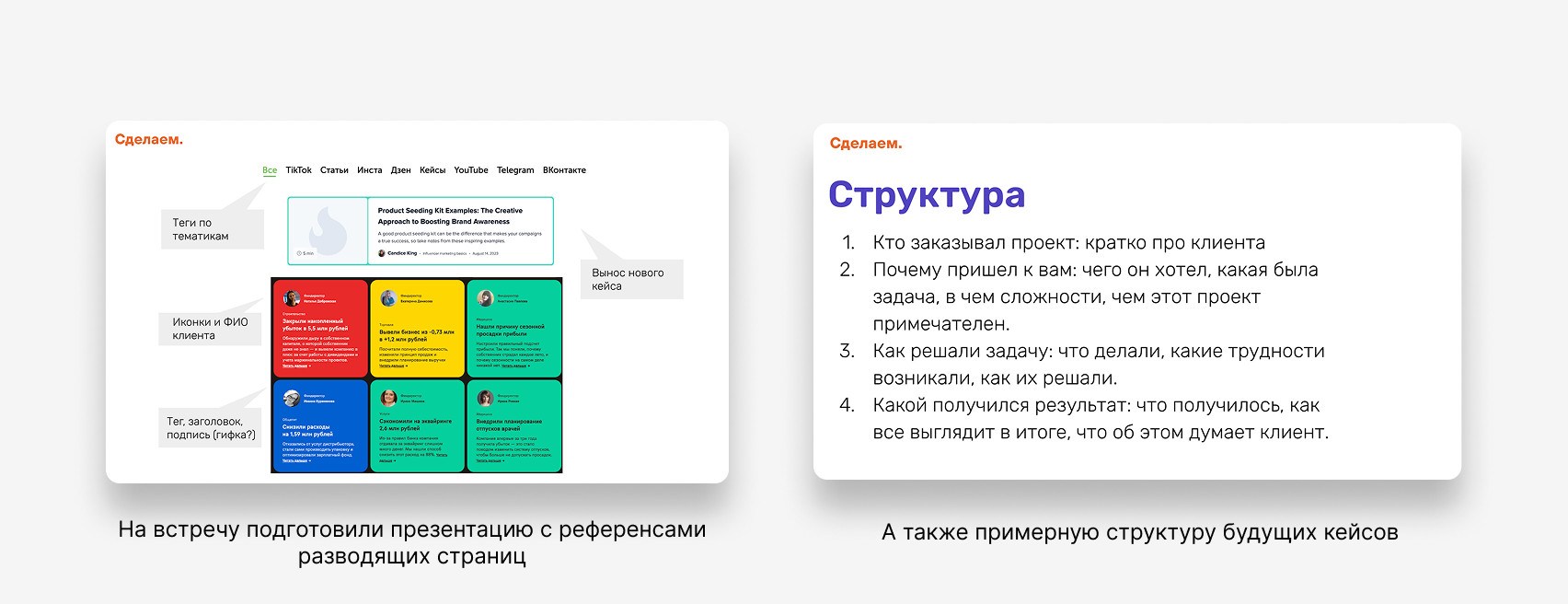 Определились со структурой страницы кейсов