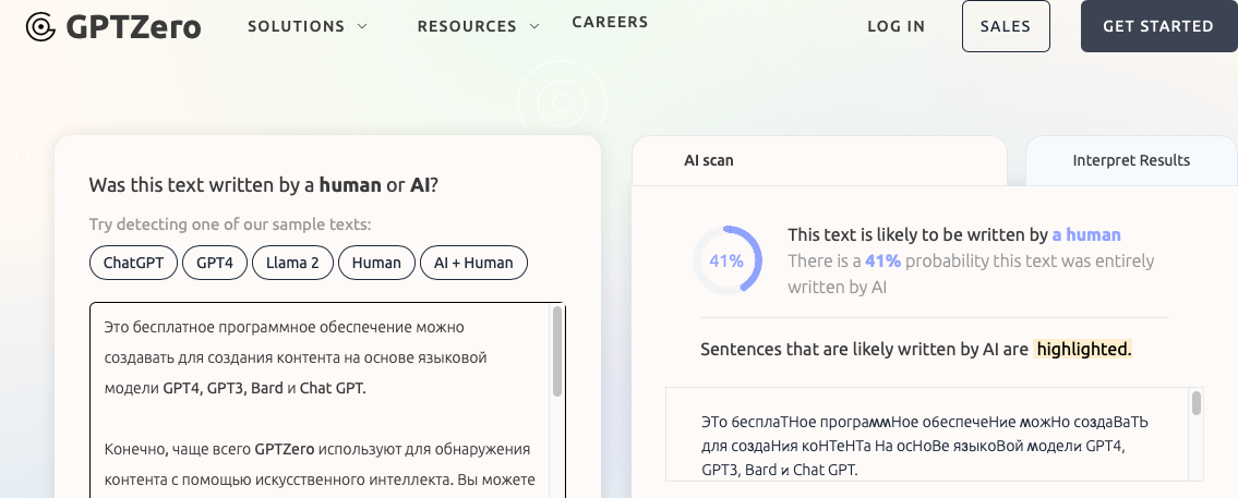 - Инструмент определяет тексты, сгенерированные ИИ с высокой точностью. По разным оценкам, она составляет до 99%.