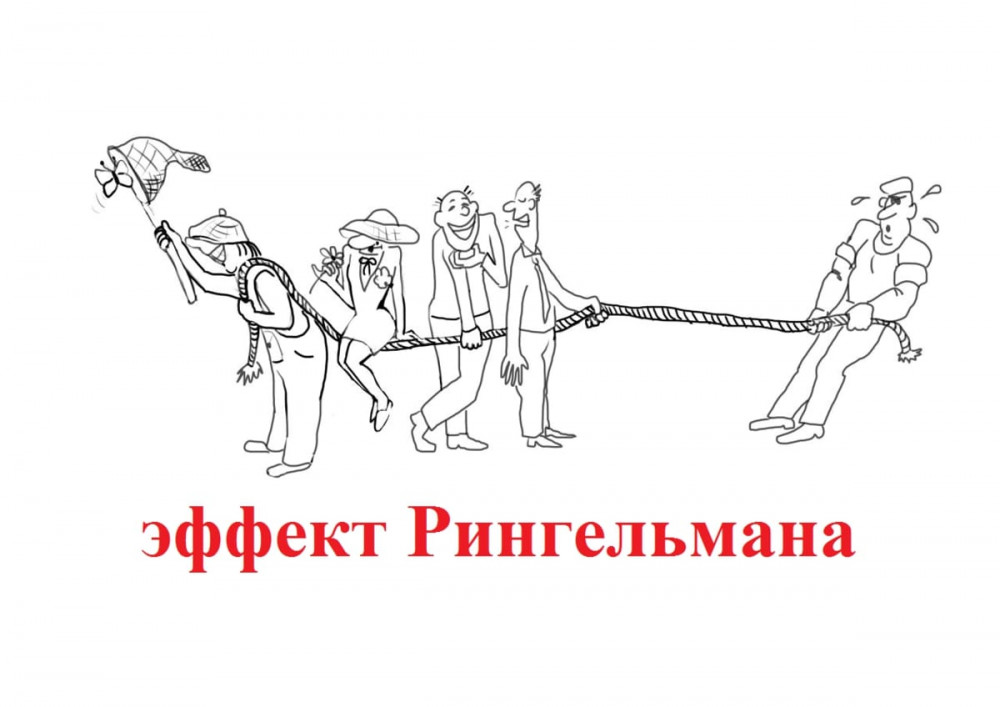 1. Эффект Рингельмана описан в социальной психологии как один из эффектов функционирования группы. Его другое название — социальная лень. Если описать его совсем простыми словами, то при увеличении членов группы до определенного количества эффективность работы группы уменьшается. Почему? Возможно, каждый начинает думать что-то вроде: «Нас много, пусть это сделает кто-то другой, а не я».