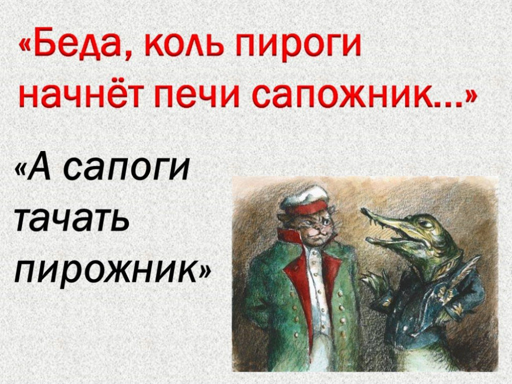 Беда, коль пироги начнет печи сапожник, а сапоги тачать пирожник