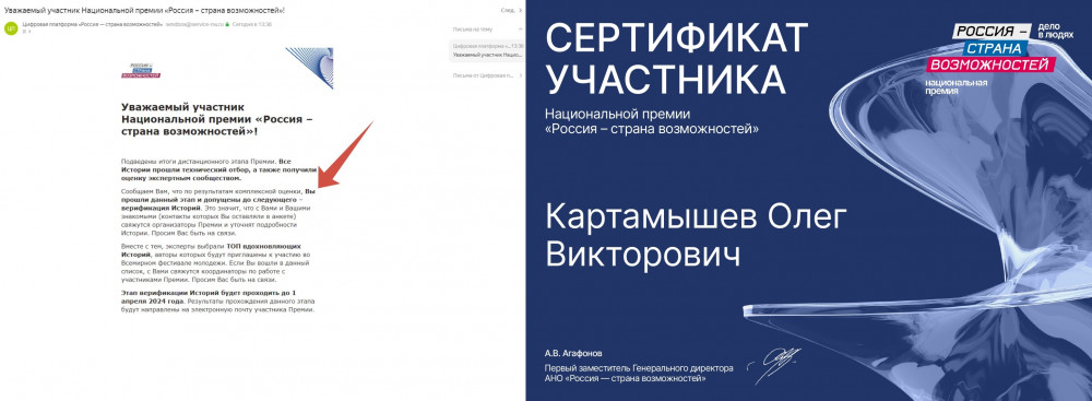 Как-то относительно недавно я публиковал пост, в котором сообщал, что решил подать заявку на участие в национальной премии «Россия — страна возможностей». Тишина-тишина, я уже подумал, что моя история, мой 25-ти летний опыт не пригоден для подобных проектов.