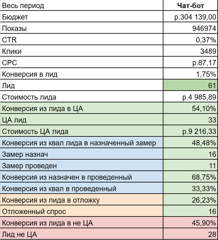 Выстроили связку: реклама → канал / сайт / бот. 2. Аудитории и рабочие связки У нас уже был опыт работы с ремонтом квартир в Telegram, поэтому:- использовали рабочие связки- запускались на аудитории, которые уже показывали результат в Москве, 3. Подключили аналитику и точечное масштабирование На сайт и бота были установлены UTM метки.Из канала напрямую не отследить с какой именно рекламы пришел клиент, но ключевой показатель — замеры, именно их мы отслеживали с сайта и чат-бота.Это позволило понимать, откуда реально приходят заявки, не сливать бюджет на неэффективные источники. 4. Запустили трафик сразу на 3 источника: Telegram-канал, сайт и чат-бот По цифрам увидели: сайт даёт лидов и квалов, но конверсия из квал лида в замер почти в 2,5 раза ниже, чем у телеграм бота В итоге сделали фокус на телеграм канал и бота. Потратили на чат-бота: 304 139 ₽ Квал лидов: 33 Стоимость квал лида: 9 216 ₽ Проведенных замеров: 11 Стоимость проведенного замера: 27 649 ₽ Договоров: 3 По итогу клиент получил: стабильный поток заявок и замеров, полностью выстроенную рабочую воронку в Telegram. Благодаря нашей рекламе клиент подписал 3 договора на общую сумму 7 000 000 ₽ Тогда напишите мне кодовую фразу «Ремонт» в телеграм и мы договоримся о бесплатной стратегической сессии, после которой вы поймете выгодно ли будет для вас сотрудничество со мной и примете решение! Мой телеграм для связи: https://t.me/StasFadeev Так же, рекомендую подписаться на мой телеграм канал, где я рассказываю о особенностях трафика и работе с ремонтом квартир, примерами конвертирующих чат-ботов и рабочими связками: https://t.me/FadeevTG