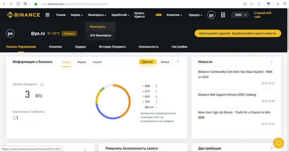аккаунта на Binance Futures После успешной авторизации вы попадаете в личный