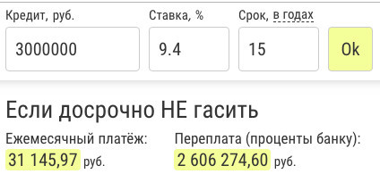 Покажу на конкретном примере с расчётами на кредитном калькуляторе с досрочным погашением и графиком платежей.
