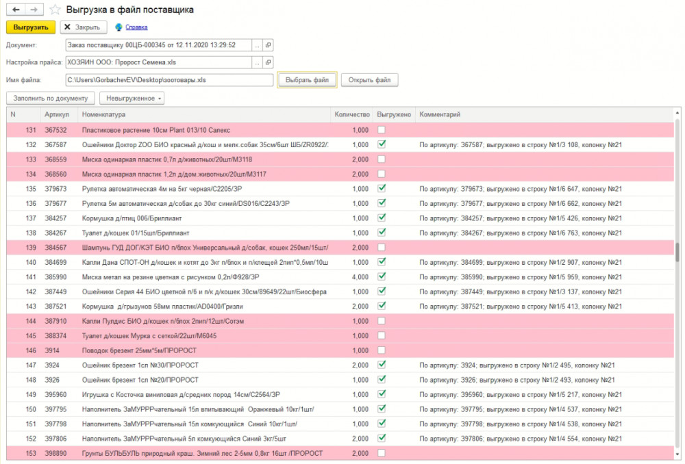 Кейс: Выгрузка заказа в прайс поставщика