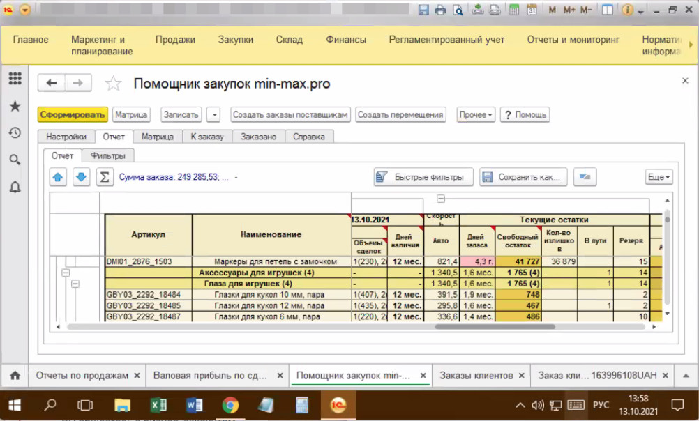Суть проблемы. В большинстве компаний отдел закупок почти все расчёты делает в MS Excel. Это отличный инструмент, но далеко не идеальный. Есть проблемы с выгрузкой данных из 1С и составлением отчетов, сложно настроить многофакторную формулу заказа и любую формулу, которая не помещается в одну строку, например, расчёт товаров для заказа с одновременным расчётом сезонных коэффициентов, страхового запаса, учётом дней наличия и ручных отметок о выводе товара из ассортимента. Настроить такой расчёт в Excel — настоящее искусство, а выгружать в него из 1С данные — рутинная и сложная ежедневная работа.