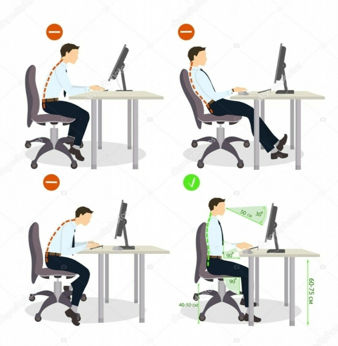 Важно почаще отвлекаться от экрана, походить, сделать гимнастику. В этом может помочь Telegram бот Office Gym bot, который напоминает об отдыхе и советует упражнения для офисной зарядки. Польза. Уменьшение боли в глазах и шее, снятие стресса, улучшение кровообращения, растяжка мышц и суставов, укрепление здоровья, отличное настроение. 4. ПРОВЕТРИВАТЬ ПОМЕЩЕНИЕ Сухой воздух, пропитанный химическими выделениями офисных стен, пыль, концентрация углекислого газа — медленно, но верно наносят урон организму. Проявляется это просто: сонное настроение, вялость, чувство усталости даже после хорошего сна и питания. Рекомендуется чаще проветривать помещение, пользоваться увлажнителем, протирать пыль, завести комнатные цветы. Польза. Насыщение воздуха кислородом, снижение концентрации вредных веществ, удаление посторонних запахов. 5. ПРАВИЛЬНАЯ ОСАНКА Неправильная осанка ведет к деформации опорно-двигательного аппарата, нарушению кровообращения и дыхательного процесса, а за ними — хроническая усталость и другие заболевания.