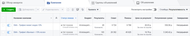 Хочу сказать сразу, что при тесте аудиторий на ватсап, через разные цели количество заявок приходило очень медленно и следовательно цена заявки была довольно дорогой В окончательном результате видно, что за клик мы смогли его еще уменьшить на 2 рубля (9,78р) в сторис. И также в ленте на 4 рубля (10,62). Суммарно получили более 300 новых обращений в What’sApp через рекламу. Цели клиента были достигнуты! Понравилась статья? Если есть какие-то вопросы, обращайтесь в личные сообщения. Также будем рады обратной связи в комментариях!