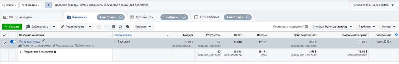 Примеры наиболее продающих объявлений из Stories: __________________________________ Кол-во заявок в форму лидов: 22 Стоимость заявки: 225 руб. Средний чек: 3700 руб. Количество переходов: 177 Цена за переход: 26 руб. Потрачено на форму лидов: 4992 руб. Кол-во заявок в директ : 52 Стоимость заявки: 96 руб. Всего потрачено: 4992 pуб. Период запуска рекламы: 27 ноября-4 декабря 2019 г. Понравилась статья? Если есть какие-то вопросы, обращайтесь в личные сообщения. Также будем рады обратной связи в комментариях!