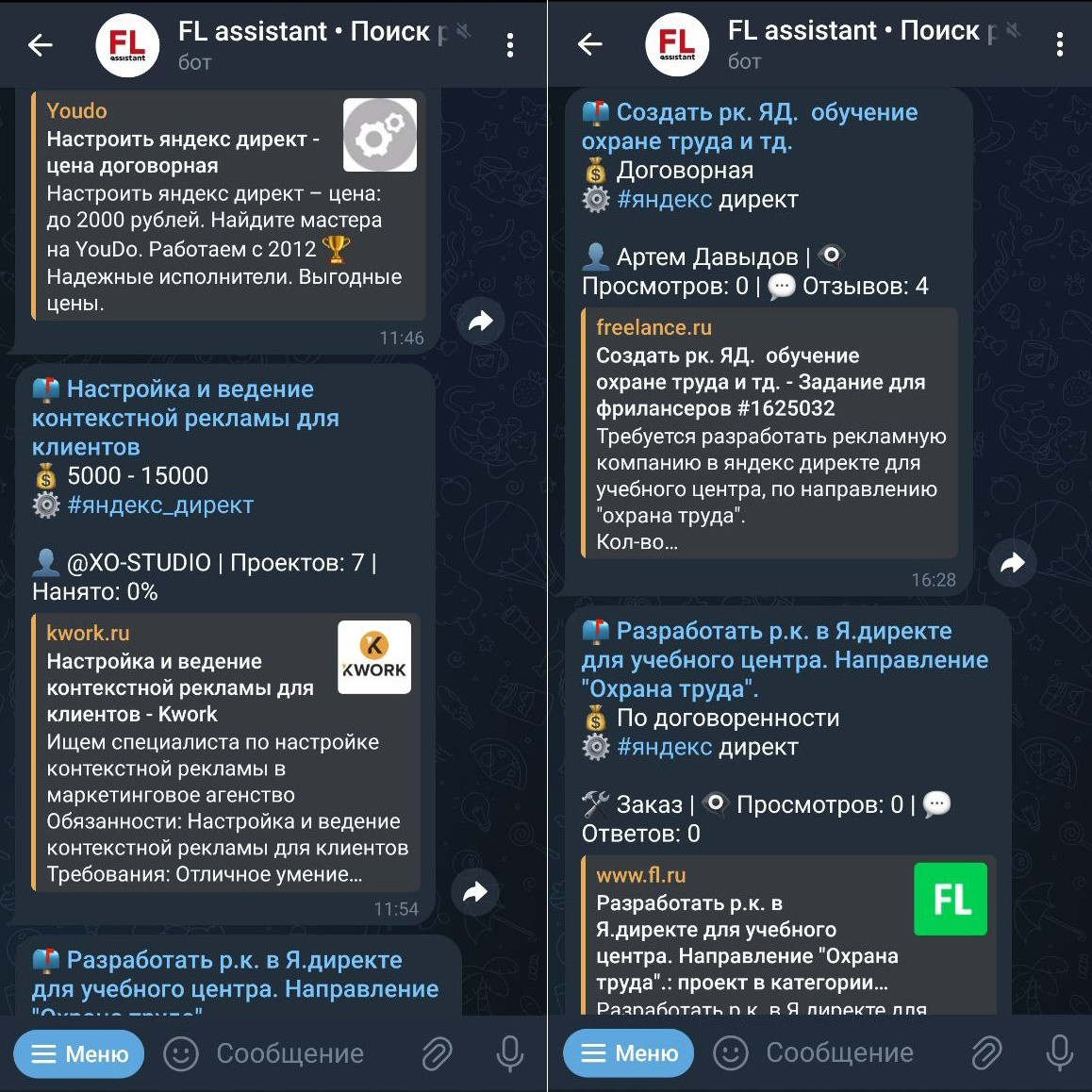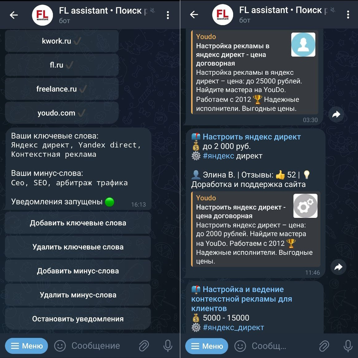 откликнуться на заказ первым. FLassistant присылает уведомления в Telegram