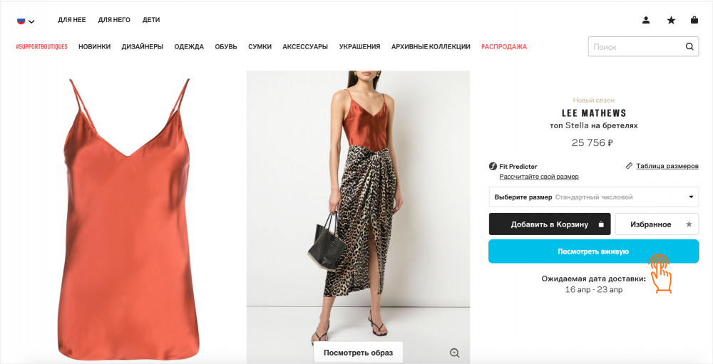- На странице товара продавец размещает кнопку «Посмотреть вживую»