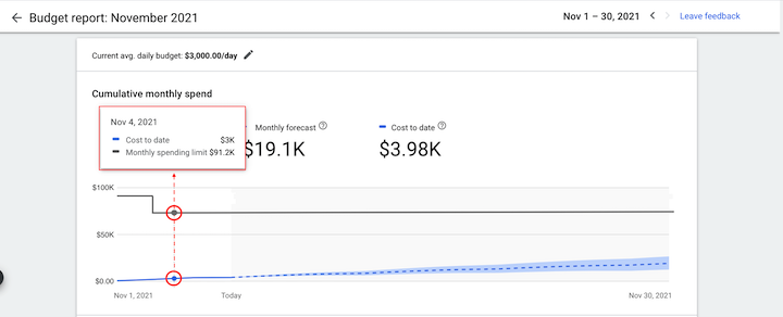 Чтобы понять, что здесь происходит, сначала нужно понять средний дневной бюджет. Когда вы устанавливаете свой средний дневной бюджет, вы не указываете, сколько именно Google будет тратить на эту кампанию каждый день. Вы даете Google приблизительное представление о том, сколько вы хотите, чтобы ваши ежедневные расходы составляли в среднем в конце месяца — это означает, что Google может превысить эту сумму или не дотянуть ее в любой день.