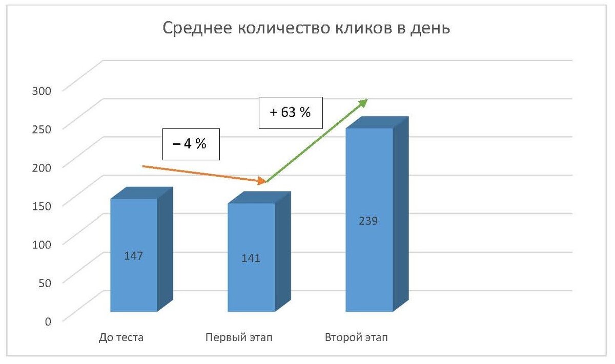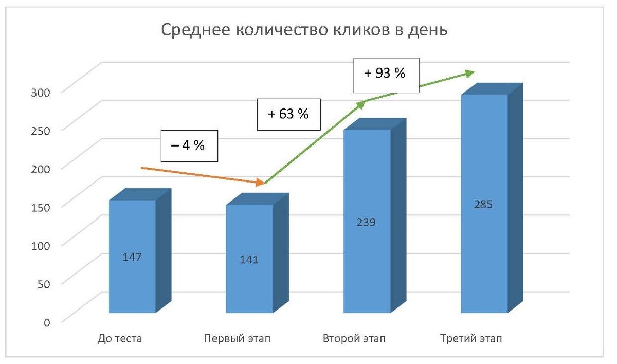 Прогноз показал: в день без изменения бюджета и при СРС, равной 17 руб., можно получать на 44 клика (то есть на 30 %) больше.