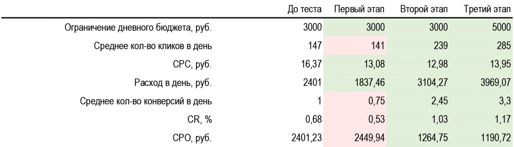 До нас было настроено ручное управление ставками с оптимизацией. Вот какую статистику мы собрали за последние две недели: