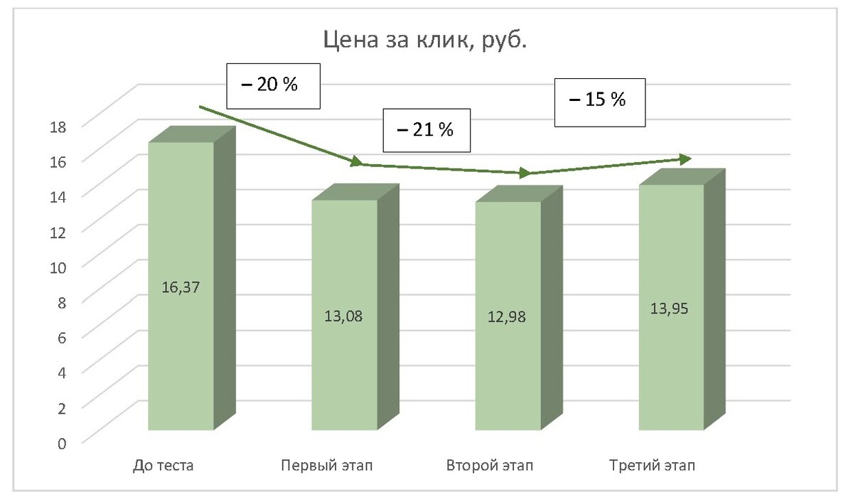 Вот что у нас получилось: Итак, средний расход в день не увеличился, CPC существенно снизилась, мы на правильном пути: Однако снизились и конверсии. CPO выросла. Количество кликов несколько сократилось: Пока не все параметры удовлетворяют требованиям клиента. Поэтому продолжаем искать оптимальное решение. Экспериментируем дальше. Наша цель — рост количества кликов. Если при R-max, равной 17 руб., мы получили СРС, равную 13,08 руб., то сможем ли мы получить СРС, равную 15 руб., при повышении R-max до 19 руб.? Повышаем — и смотрим статистику: Количество кликов резко возросло: А СРС неожиданно снизилась, вместо того чтобы повыситься: Из-за чего это произошло? Из-за ограничения дневного бюджета. Дневной бюджет 3000 руб. полностью израсходовался (средний расход в день составил 3104,27 руб.), и мы не могли выкупить все клики, доступные при R-max, равной 19 руб. Невыкупленные клики стоили выше среднего, поэтому мы и получили незначительное снижение СРС. Количество конверсий выросло почти в два с половиной раза, CPO существенно снизилась. Все пожелания клиента учтены. Но можно улучшить результат — для этого необходимо снять ограничение бюджета. Сохраним R-max на уровне 19 руб., но увеличим дневной лимит бюджета с 3000 руб. до 5000 руб. Смотрим, что получилось: CPC по-прежнему ниже, чем была изначально. Она немного выросла относительно предыдущего этапа, хотя и не настолько, насколько мы предполагали: Количество кликов заметно выросло, как и положено при увеличении бюджета: Количество конверсий продолжает расти, CPO продолжает снижаться. Итак, мы проверили и убедились, что РК может быть эффективна и при увеличении бюджета в рамках, обозначенных клиентом. На тестирование ушло 20 дней. Мы проработали оба варианта: Все остальные условия были соблюдены на втором и третьем этапах: CPC и CPO только снижались, конверсии росли. Таким образом, мы предложили клиенту на выбор варианты второго и третьего этапов тестирования. Клиент выбрал вариант третьего этапа и доволен результатами. Собирается использовать Умное управление и в дальнейшем. Подробности работы над проектом смотрите в онлайн-дневнике . Недовольны тем, как расходуется ваш бюджет? Хотели бы увеличить трафик и повысить продажи? Запишитесь на тест услуги Умное управление и следите за результатами онлайн в режиме реального времени. Три недели тестирования — бесплатно! Мы подбираем варианты на ваших глазах, а вы выбираете тот вариант, который больше всего подходит именно вам. Продажи не увеличиваются — мы возвращаем деньги. Оплата — только за результат. *R-max — максимально допустимая цена за клик. ** Бум-ставки — это кратковременный взрывной рост ставок на Яндекс.Поиске. В период бум-ставок разница между ставками и прогнозом списываемой цены клика превышает 500 %, может достигать 1000 % и даже 2000 %. Надежность прогноза списываемой цены клика резко снижается. Попытка назначения бум-ставки с целью удержания объема трафика часто приводит к «сливу бюджета» — закупке кликов по неоправданно высокой цене. Защита от бум-ставок сводится к отслеживанию дельты между ставкой и прогнозом списываемой цены клика и соответствующей реакции при назначении ставок.