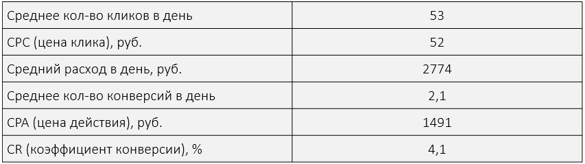 Настроили стратегию «Максимум конверсий» с ценой конверсии 1500 руб. и недельным бюджетом 20 000 руб.