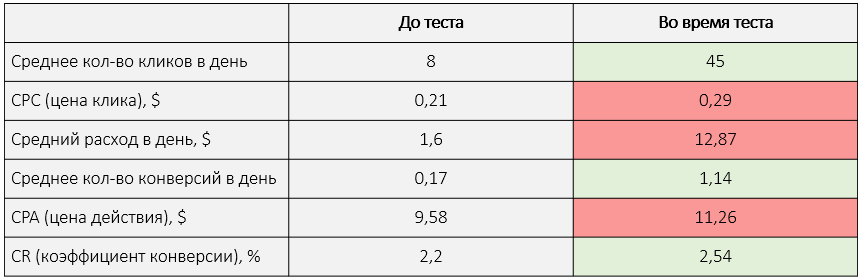 Клиент хотел увеличить и количество кликов, и количество конверсий. При условии, что дневной бюджет не должен превышать 20 $.