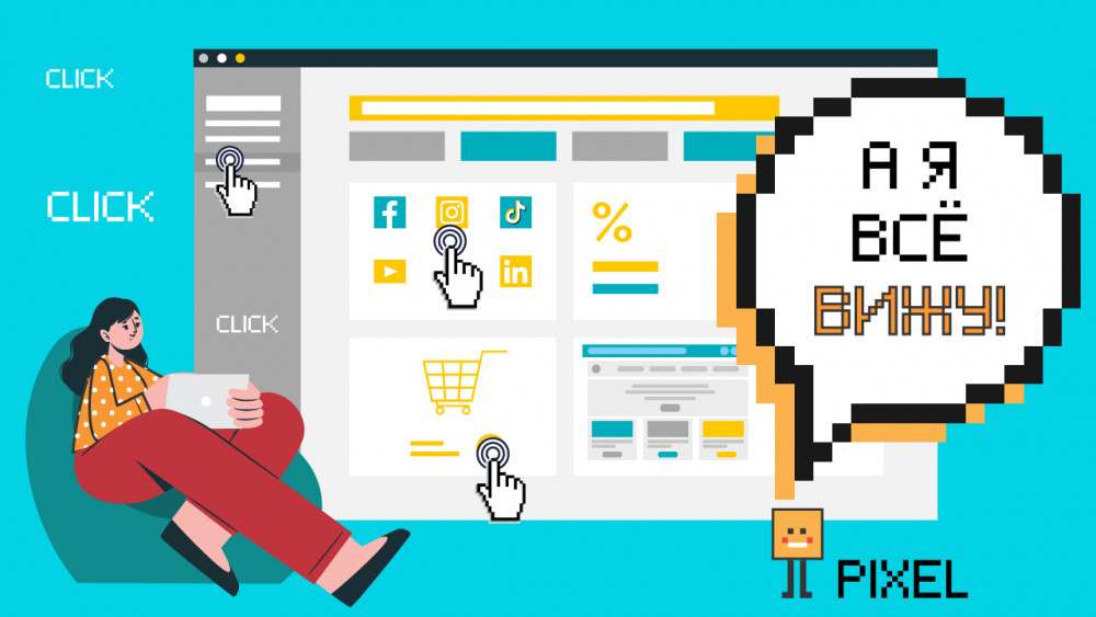 Пиксель — это JavaScript-код, который собирает информацию о пользователях и отслеживает их действия на сайте. Какие страницы посещал пользователь, на какие кнопки нажимал, какие формы заполнял, какие товары сложил в корзину, а какие купил — все эти шаги фиксирует пиксель. Сам код называется именно пикселем, поскольку одна из его частей — картинка размером в пиксель. Эта картинка загружается на сайт. Размещается пиксель на каждой странице сайта.