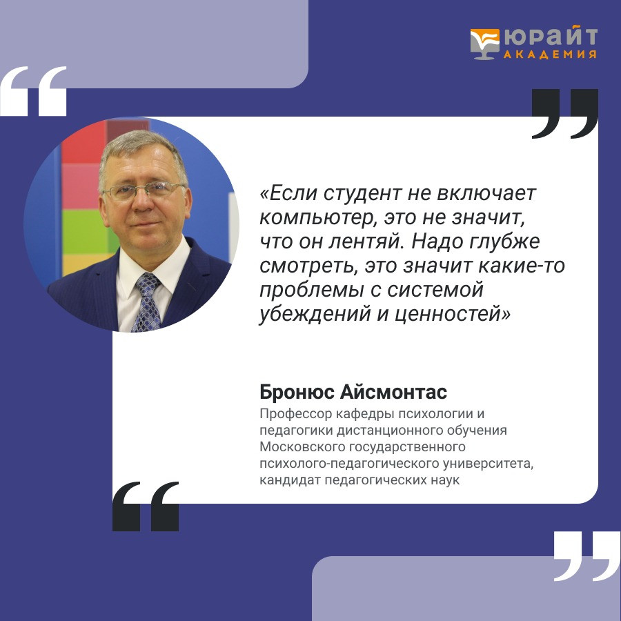 Айсмонтас подчеркнул: дистанционное образование это довольно сложная, интенсивно развивающаяся система педагогической деятельности, поэтому изменение одного элемента в ней влечет за собой качественные преобразования и в ее других структурных элементах. Это и произошло в критических обстоятельствах противостояния пандемии, но нередко игнорируется: «Никто даже не пытается понять, что при переходе на дистанционное образование надо менять и нормативно-правовую базу, и нагрузку преподавателей. Это будет отражаться и на качестве образования, и на мотивации».