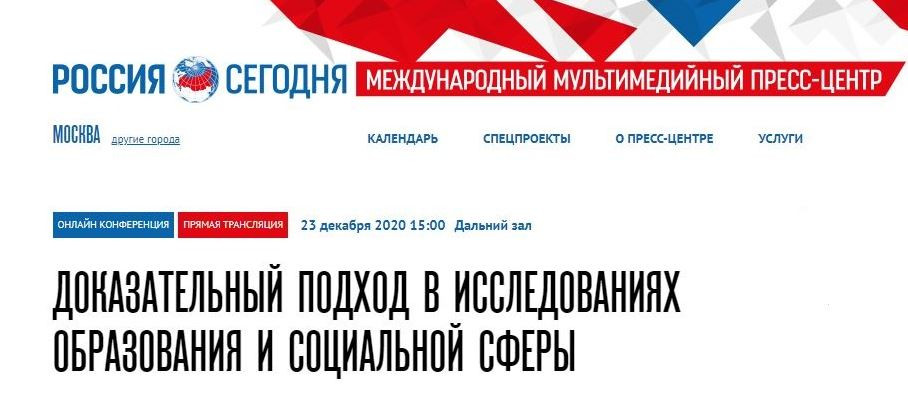 23 декабря в МИА «Россия сегодня» состоялась онлайн-конференция «Доказательный подход в исследованиях образования и социальной сферы».
