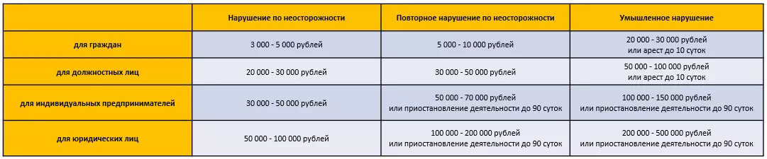 - Уголовная ответственность (УК РФ Статья 263.1. Нарушение требований в области транспортной безопасности) — штраф до 1 млн рублей или лишение свободы на срок от 5 до 8 лет.