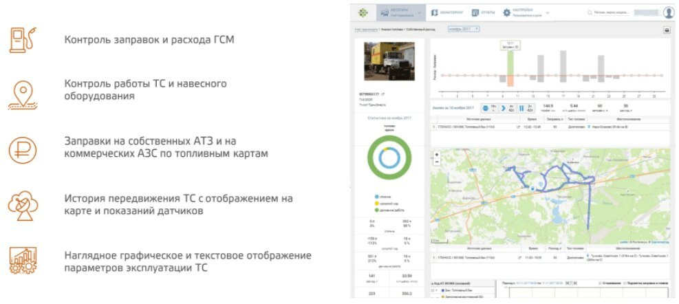 Контроль расхода топлива самая понятная и самая затратная статья. Технику оборудуютдатчиками уровня топлива (ДУТ) и терминалами спутниковой навигации. По оценкам экспертов, инвестируя в мониторинг ГЛОНАСС, компании уже после первого месяца применения телематических решений экономят до 30% расходов на ГСМ.