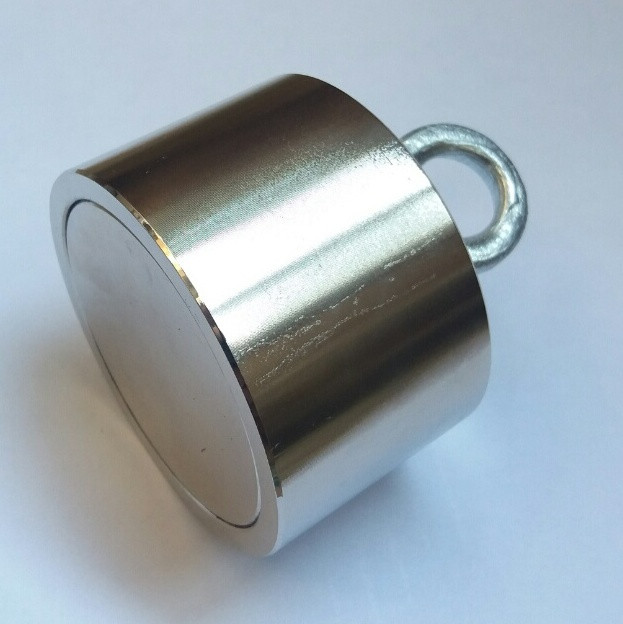 Что такое поисковый магнит и его отличие от неодимовой шайбы. Поисковым магнитом называется магнит который можно использовать в качестве поиска и подъема им железосодержащих предметов в труднодоступных местах для такой цели отлично подходит неодимовый магнит который обладает огромной силой при своих не значительных размерах и малой массой. Но так как неодимовый магнит плохо обрабатывается и при открытом ударе может разрушится или сколоться то его помещают в защитный корпус или кожух. Для изготовления поискового магнита используют неодимовый магнит шайбу или диск с отверстием по центру через которое будет проходить крепёжный болт или крюк. Корпус изготавливается из стали и имеет форму пустотелого стакана в него будет установлен на эпоксидную смолу или клей неодимовый магнит, через стальной корпус и магнит проходит резьбовое отверстие одно или два в зависимости от вида поискового магнита в отверстия вкручивается рым болт или крюк для привязывания веревки или троса. Весь поисковый магнит оцинковывают или покрывается слоем лака для защиты от коррозии. Поисковые магниты могут визуально не значительно отличаться это зависит от производителя, главный критерий это какого размера установлен неодимовый магнит от него зависит подъемная сила поискового магнита, чем больше неодимовая шайба тем сильней будет поисковый магнит.