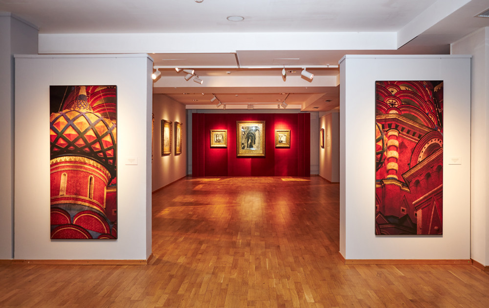В экспозиции представлено около ста работ автора из серий «Кремль», «Русские сновидения», «Город солнца» и «Христианский период».