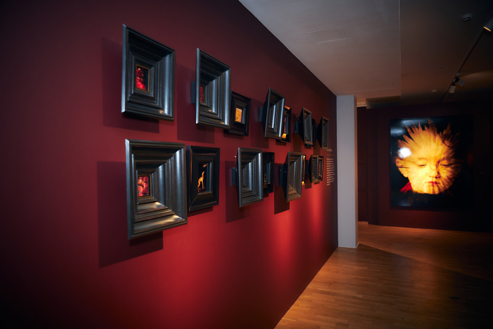 Экспозиция разделена кураторами и архитекторами на четыре раздела, гармонично распределяющих зрительское внимание между визуальными и смысловыми нарративами. Цвета разделов подбирались под ключевое произведение в серии, которое далее выделялось большим пространственным порталом, декорированным тканью.