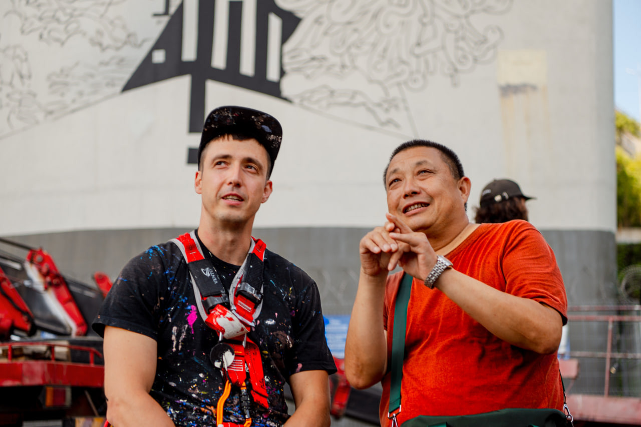 Каждый день — как открытая сцена: художники работают на подъёмниках, наносят линии, штрихи и формы, вокруг — оживлённое внимание. Люди подходят, спрашивают, наблюдают, фотографируют процесс. Для многих это уникальная возможность увидеть рождение искусства в режиме реального времени.
