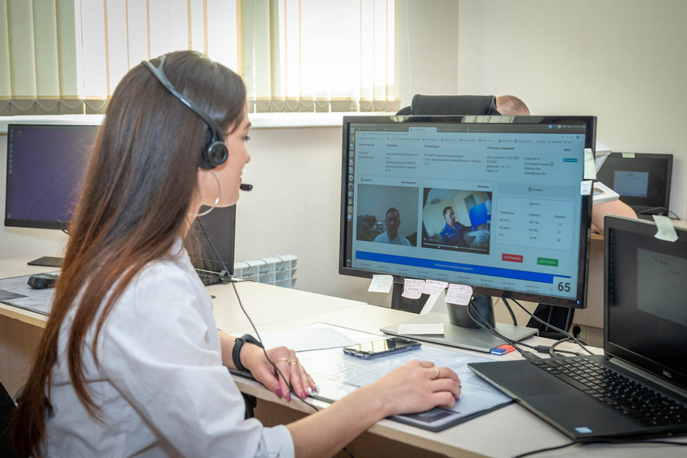 Далее на мониторе проводится опрос о самочувствии обследуемого в текущий момент. Информация отправляется уполномоченному медработнику, который ее анализирует и выносит решение о допуске водителя на маршрут или запрете выезда. Удостоверяется решение медика его специализированной электронной подписью.