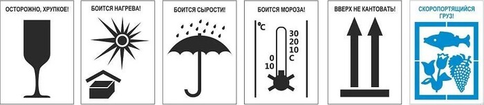 Существует ряд опознавательных знаков, дающих представление о том, в каких условиях должен перевозиться груз и как с ним необходимо обращаться во время разгрузочно-погрузочных работ: