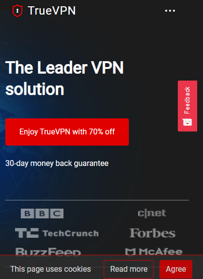 TrueVPN — это австралийский прокси-сервис VPN, который предлагает DNS с нулевым разглашением и поддерживает 100% секретность.