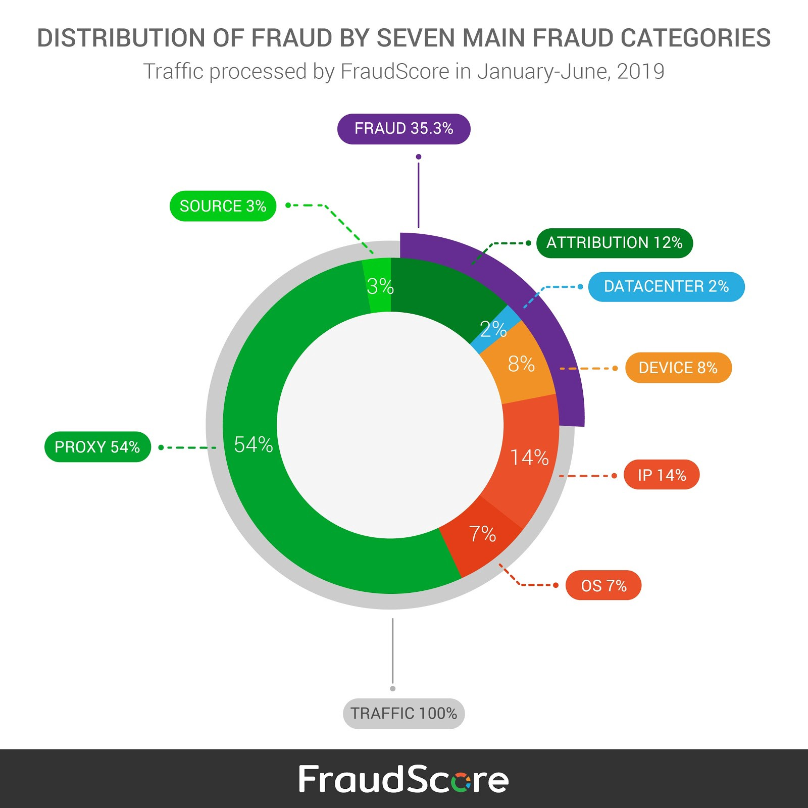 - По данным FraudScore, 35,3% трафика в интернете оцениваются как мошеннические