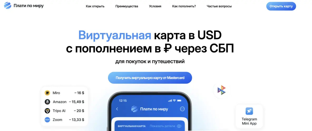 Этот сервис также предлагает виртуальные карты, но имеет свою четкую нишу и специфику, которая может подойти не всем.