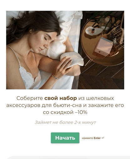 - Увеличить конверсию в покупку и средний чек через квиз-конструктор.