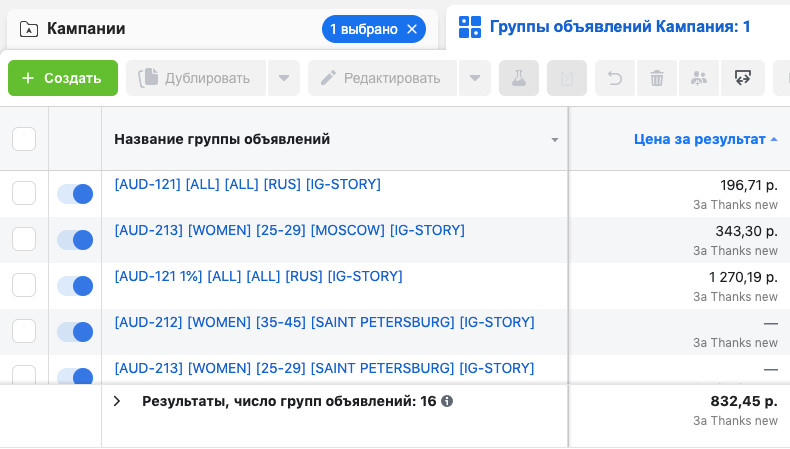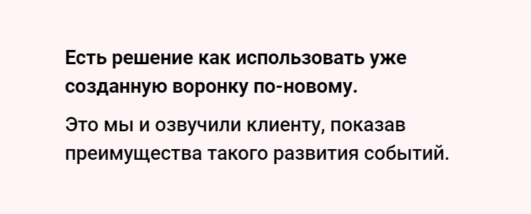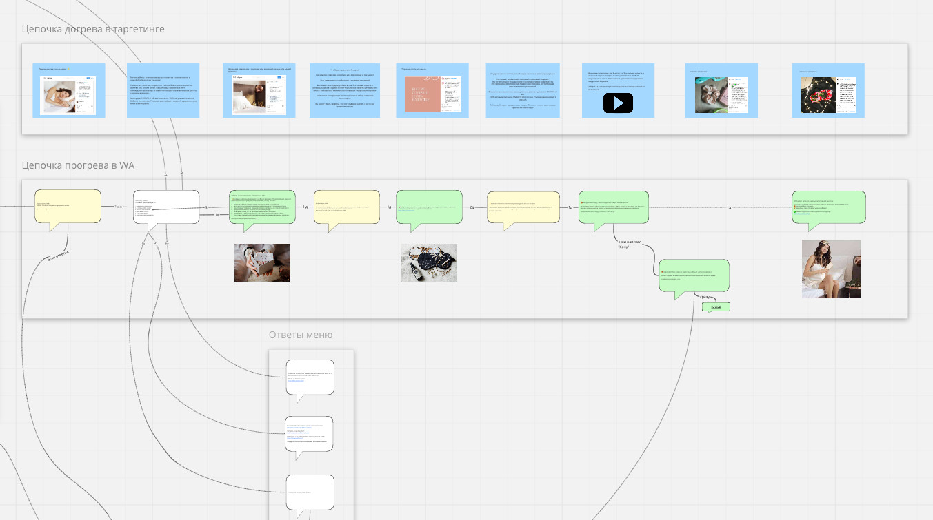 Собрали чат-бота в amoCRM, запрограммированного на выполнение определенных действий. Salesbot обрабатывает входящих лидов с сайта и уточняет у клиента: Настроили бота в визуальном редакторе amoCRM и перенесли сообщения, спроектированные в MIRO для клиентов, которые по каким-то причинам не завершили оформление заказа в воронке. И этих же неопределившихся покупателей одновременно с цепочкой прогрева в WhatsApp дополнительно сопровождаем релевантной его этапу рекламой в Instagram. Так покупатель получает дожимающие и прогревающие сообщения, всегда в актуальном контексте, что позволяет продавать больше без дополнительных усилий и настроек. Демонстрация как работает чат-бот в WhatsApp, после оформления заказа в корзине: Клиент активно рекламирует свой товар у блогеров, догоняет аудиторию через ретаргетинг в Instagram и ведет покупателя по схеме: Мы предложили и протестировали новые гипотезы относительно холодного трафика: Перед настройкой таргетинга мы проводим ряд важных мероприятий: Это если коротко, а полное руководство по подготовке и настройке таргетинга я написал в одном из предыдущих кейсов про салон красоты в Москве. Опираясь на полученные данные и имея ограниченный рекламный бюджет на тест, мы разработали и загрузили всего 28 различных сегментов. Разбили их по интересам, возрасту и основным городам России. Как правило, в первый месяц работ по таргетингу мы тестируем от 100 до 200 сегментов аудиторий и выявляем лучшие связки. Разработали 6 креативов для ленты и Stories. Перемешали все тексты, фото/видео и сегменты аудиторий и получили 32 рекламных объявления для теста. Тестируем каждый текст+тизер для всех сегментов аудиторий и выявляем лучшую связку. Наилучшую конверсию показали видео-креативы в Stories с демонстрацией продукции и описанием ее преимуществ. Подключили Pixel, прописали UTM-метки и настроили событие Lead для отправки целевого действия на сайте в рекламный кабинет Facebook. В будущем по событию Lead можно будет оптимизировать рекламные кампании и снижать стоимость лида. Холодный трафик принес нам дополнительных лидов от 195 до 1270 рублей по разным сегментам. В среднем новый лид обошелся в 832,5 рубля — на 35% ниже текущей кампании ретаргетинга заказчика (1277 руб/лид). Это при том, что ретаргетингом они догоняли людей уже знакомых с продуктом, а мы работали с холодным трафиком. В дальнейшем мы отключим неэффективные сегменты, объявления и будем масштабировать связки, показавшие наилучший результат. Хочу обратить внимание, что 35% — это зачастую маржа во многих бизнесах. Если наш подход применить и к ретаргетингу, то мы сможем снизить стоимость лида с 1200 до 400-500 рублей — таков прогноз таргетолога: Сергея Ридош. За неделю работы в новом формате мы увидели такие цифры: И это все без учета тех 15 %, кто купил позже, после цепочки прогрева. Проект реализован командой Monakov.Studioпод руководством Монакова Андрея.