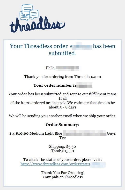 Threadless использует простой подход с акцентированием внимания получателя на периоде ожидания:
