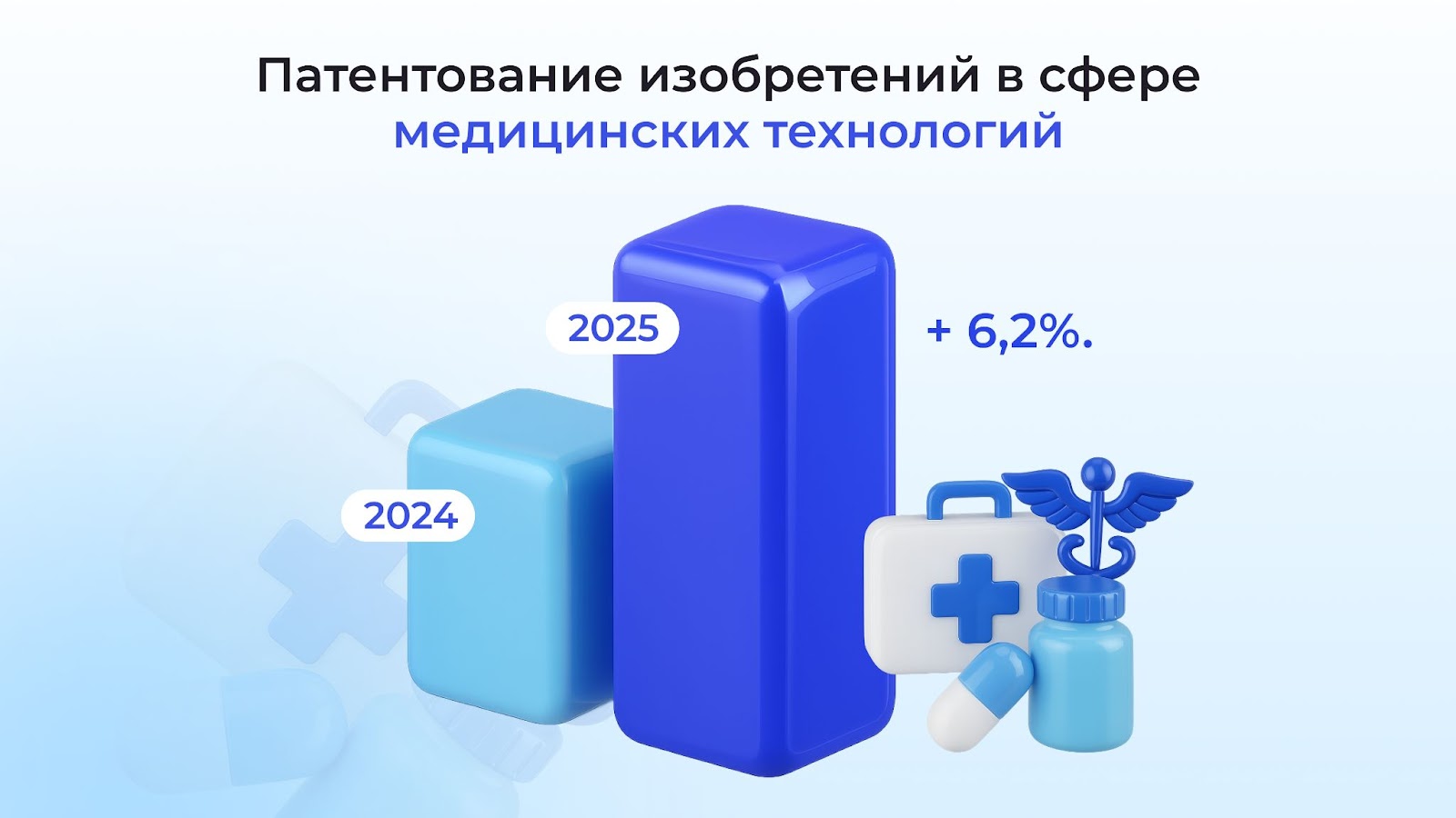 - Медицинские технологии. Направление стало самым популярным для патентования изобретений: 647 заявок (+6,2% к показателям периода в 2024 году). Активны медицинские вузы (Рязанский, Самарский) и НИИ.