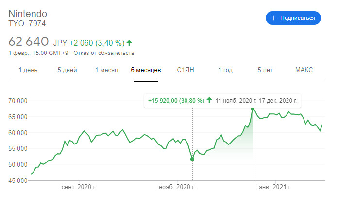 Nintendo повысила свой годовой прогноз. Компания теперь ожидает, что ее выручка за финансовый год, который завершится 31 марта, увеличится на 22% и составит 1,6 трлн иен. Ранее Nintendo ожидала повышения показателя на 7%.