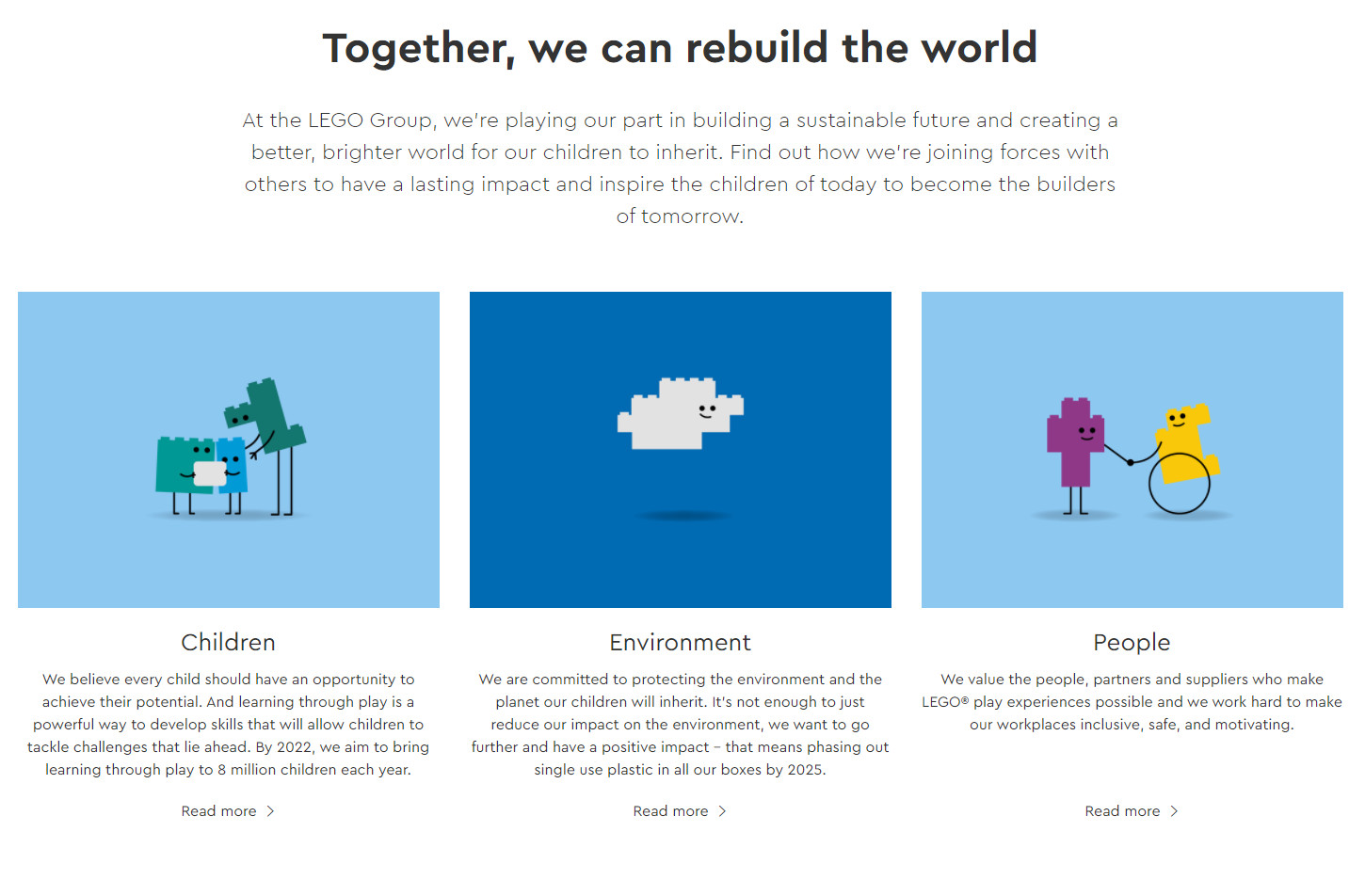 Здесь я, конечно, замахнулась на идола. Однако примеры отчетов датского производителя игрушек кочуют из одной подборки эталонных КСО в другую уже много лет. Мне хотелось взять некую бесконечно удаленную точку для создания масштаба. В России корпоративные социальные отчеты находятся на ранней стадии развития, тем полезнее увидеть, как эта культура выглядит в своей зрелой форме.