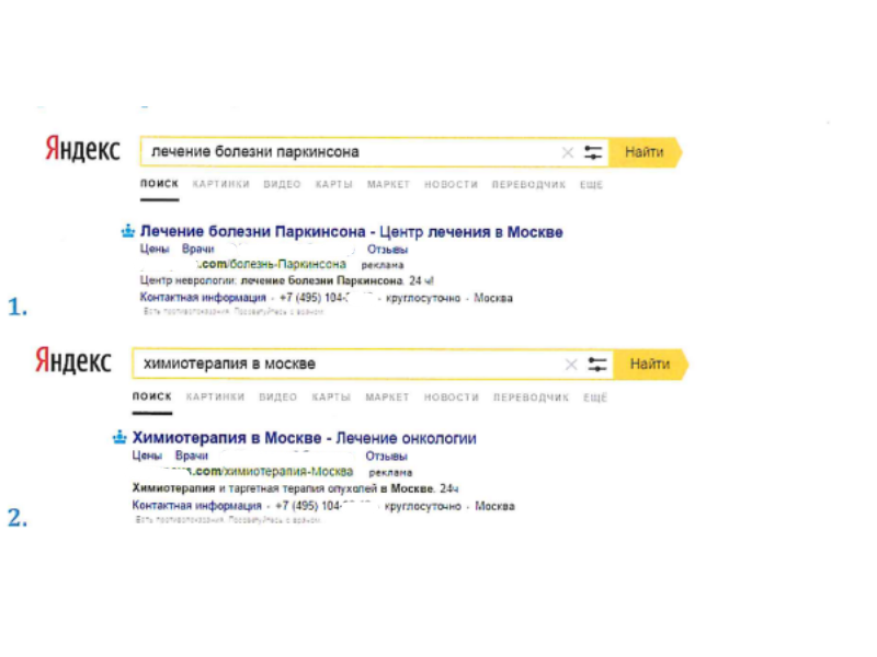- Медицинская тематика ограничивает некоторые рекламные активности при продвижении. Например, модерацию, вероятнее всего, не пройдут объявления, содержащие фразы «диагностика», «курс лечения», «терапия», «уход», «консультация», «прием» и др.) Google пристально следит за продвижением сайтов YMYL (Your Money or Your Life) тематики, а также в обеих системах установлен запрет на использование названий диагнозов в рекламных текстах;
