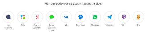 В Jivo (бывшее название — JivoSite) чат-бот интегрирован прямо в сервис. Можно подключить к Jivo боты из 6 партнерских вариантов, адаптированных для разных задач и направлений бизнеса. Важно, что бот будет работать во всех текстовых каналах, к которым подключен Jivo (кроме СМС-сообщений и e-mail), а это: То есть все обращения будут поступать в единый сервис, где их обработает оператор или бот. Благодаря этому получится уделить внимание каждому потенциальному клиенту! Например, компании «Ренессанс Жизнь» удалось с помощью чат-бота в Jivo снизить процент пропущенных заявок с 10 до 0, при этом 90% запросов программа успешно закрывает без участия операторов. Бот особенно актуален еще и потому, что после подключения сервиса Jivo количество заявок в целом увеличивается в 3-4 раза. Рост конверсии происходит за счет того, что: При большом потоке обращений бот помогает сконцентрироваться только на заинтересованных клиентах. По данным сервиса Jivo, после подключения и правильной настройки чат-бота нагрузка на операторов снижается от 20 до 50%. Сейчас для бизнеса в основном используются чат-боты, работающие на основе сценариев. Они распознают ключевые слова или конкретные команды и отвечают по заданному алгоритму. Большинство таких бизнес-ботов можно настроить самостоятельно или при помощи службы поддержки разработчика. Существуют также самообучающиеся программы на основе искусственного интеллекта, но они гораздо дороже и иногда выдают непредсказуемый результат. Поэтому боты на основе сценария остаются лучшим выбором для бизнеса — особенно в том случае, если они интегрированы с многофункциональным сервисом клиентского обслуживания!