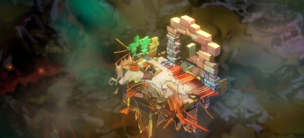 Bastion is an indie action game released for the PC in 2011 and adapted for iOS in 2012. It tells the story of «the Kid», a young man who survives a kind of apocalypse — «the Calamity», or Calamidade — that he killed everyone in his city, Caelondia, in addition to fragmenting most of his structures.