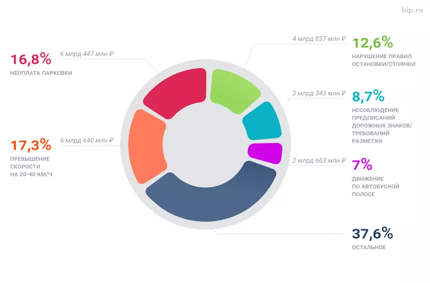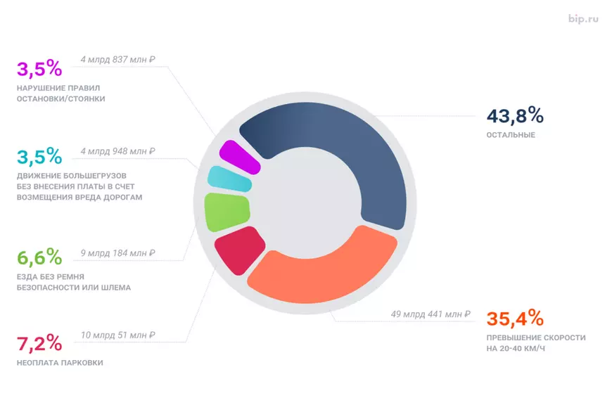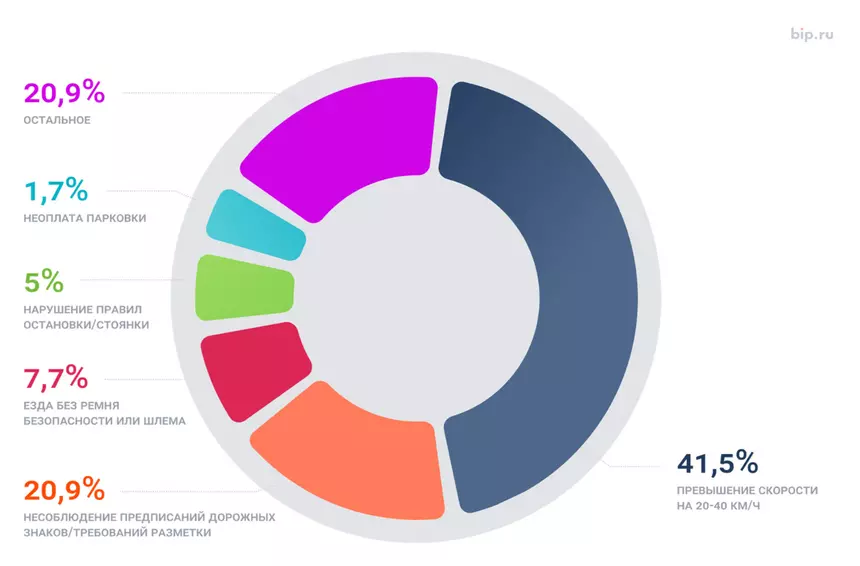 Наибольшее количество штрафов во всех регионах ГАИ было выписано за превышение скорости на 20-40 км/ч. Это нарушение составляет 66,7% от общего числа правонарушений и регулируется частью 2 статьи 12.9 КоАП. На втором месте по количеству нарушений идет штраф за езду без пристегнутого ремня безопасности — 6,2%, за ним следует игнорирование дорожных знаков и разметки — 6%. Наибольшие суммы штрафов в России пришлись на нарушения, связанные с частыми или высокими штрафами. Например, штрафы за проезд на тяжелой грузовой машине без оплаты за дорожное содержание. Три нарушения составляют половину всех расходов россиян на оплату штрафов ГИБДД: превышение скорости на 20-40 км/час, неуплата парковки и езда без пристегнутого ремня безопасности. В Москве за 2024 год было оштрафовано 32 миллиона автомобилистов на общую сумму 38 миллиардов 31 миллион рублей ГИБДД. Наиболее распространенным нарушением, как и во всей стране, оказалось превышение скорости на 20-40 км/ч. Примерно 41,5% всех штрафов в столице за указанное время пришлось именно на это правонарушение. Однако, если обратить внимание на общую сумму всех штрафов, выписанных за превышение скорости на 20-40 км/ч, то видно, что эта категория практически делят первое место с штрафами за неуплату парковки.Самые «затратные» нарушения ПДД в Москве за 2024 год Первенство в количестве нарушений и сумме выписанных штрафов оспаривают следующие регионы: *Без учета штрафов за проезд на большегрузах без оплаты за ремонт дорог, так как код региона иногда не указывается в постановлении по этому нарушению. По каждой статье КоАП лидерство по количеству нарушений в большинстве случаев принадлежит Москве, Московской области и Санкт-Петербургу, но есть исключения. Наибольшее количество штрафов за езду без ремня безопасности выписано в Москве — 2 451 184, в Дагестане — 697 474 и в Московской области — 690 868. За нарушение правил разметки больше всего штрафов выписано в Москве — 6 686 540, Московской области — 766 213 и Самарской области — 263 141. Отказ провериться на опьянение привел к большему количеству штрафов в Москве — 11647, Московской области — 5703 и в Ставрополе — 4446. Нарушения, связанные с вождением в нетрезвом виде и отказом от проверки, чаще всего штрафуют в Московской области — 4764, Республике Башкортостан — 4174 и Республике Татарстан — 3603. По количество штрафов за выезд на встречную полосу лидируют: Дагестан — 32 937, Московская область — 25 327 и Самарская область — 21 437. Лидерство по количеству штрафов за неостановку перед стоп-линией при запрещающем сигнале светофора принадлежит Волгоградской области — 132 824, Московской области — 122 526 и Свердловской области — 115 422. Самые высокие штрафы за проезд на запрещающий сигнал светофора (как однократный, так и повторный) выписаны в Москве — 383 096, Санкт-Петербурге — 286 886 и Самарской области — 156 527. Нарушения, связанные с остановкой или движением по автобусным полосам, привели к большему количеству штрафов в Московской области — 131 194, Воронежской области — 92 017 и Ростовской области — 81 524. Ксения Панфилова, ведущий аналитик на сайте bip.ru, отмечает: "Различия в рейтинге регионов по различным нарушениям могут быть обусловлены разной эффективностью работы местных подразделений ГАИ. Они применяют свои стратегии по выявлению нарушителей и снижению вероятности ДТП помимо федеральных мер по повышению 