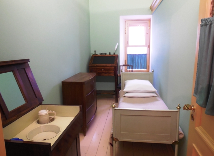 Вставали мы по звонку в шесть часов. Одевались, шли на молитву в залу. Утреннюю и вечернюю молитву читали мы вслух по очереди.- От 7 до 9 часов — класс.