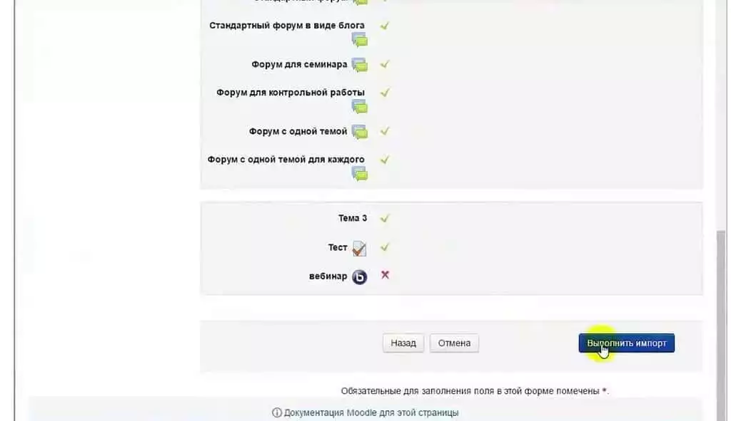 Если лень читать, посмотрите видео (меньше 2 минут) — 1. Зайдите в курс, который хотите скопировать. Щелкните Редактирование настроек и запомните короткое название курса — оно вам еще понадобится. 2. Теперь зайдите в курс, который вы хотите дополнить учебными материалами из старого или завершенного курса. В настройках перейдите в раздел Управление курсом и нажмите кнопку Импорт. После этого вы перейдете на страницу со списком кратких названий тех курсов, к которым вы имеете доступ. Выберете тот, который вам нужен и нажимайте Продолжить. 3. С помощью галочки выберите элементы курса, которые вы хотите скопировать. 4. Еще раз просмотрите выбранные элементы и проверьте, все ли правильно. Если вас все устраивает, то нажмите Выполнить импорт. Если увидели ошибку, можете вернуться и изменить выбранные позиции. На этом все. Надеемся, в процессе копирования материалов курса на платформе Moodle, у вас не возникло трудностей. Если вы хотите получать еще больше информации по теме систем дистанционного обучения и онлайн-обучения в целом — подписывайтесь на наш телеграм-канал :)