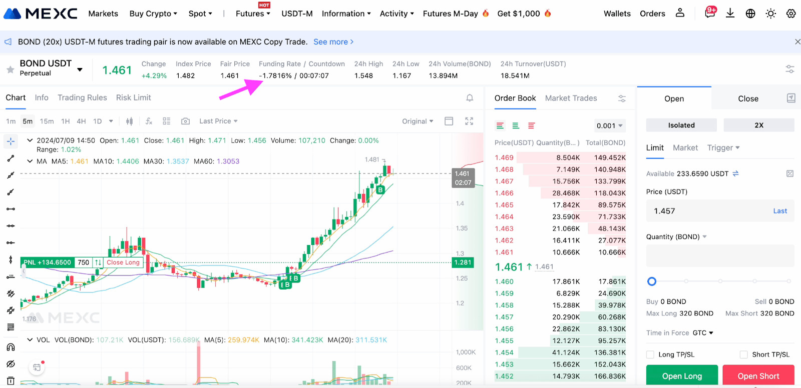 Где на бирже MEXC показано, что начисление будет через 7 минут. А на бирже Gate начисление будет через 4 часа. Ставка финансирования была отрицательная, это говорит о том, что лонгисты получат начисления, а шортисты его выплачивают. Отталкиваясь от разницы во времени, я открывал лонг-позицию на MEXC и шорт-позицию на Gate Далее получил ставку финансирования на MEXC (как держатель лонг-позиции) и сразу вышел из сделки, не дожидаясь момента когда придется выплачивать ставку фандинга на Gate (как держатель шорт-позиции). Итого был открыт лонг на 750 токенов на MEXC при средней цене входа 1,281$. И Шорт на бирже Gate ± на такое же количество токенов по ближайшей цене. Также начислился фандинг за лонг-позицию 19,15$ Далее уже лимитными ордерами частями выходил из лонга и шорта, что позволило на ценовом спреде подзаработать, а также на бирже MEXC комиссия мейкера составляет 0% это позволило еще больше сократить расходы. ——————- Шорт на бирже Gate — убыток 164,46$ Лонг на бирже MEXC — профит 191$ 191 — 164,46 = 26,54$ из которых 19,15$ начисление фандинга и 7,39$ ценовой спред В дальнейших статьях расскажу и покажу новые кейсы с арбитражем ценового спреда на фьючах и споте, а также какими ai-сервисами пользуюсь.